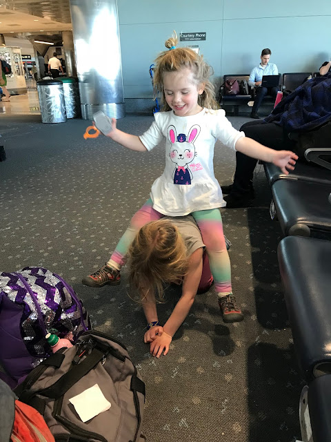 We had to go run down the moving sidewalks before the wrestling got too ugly.
